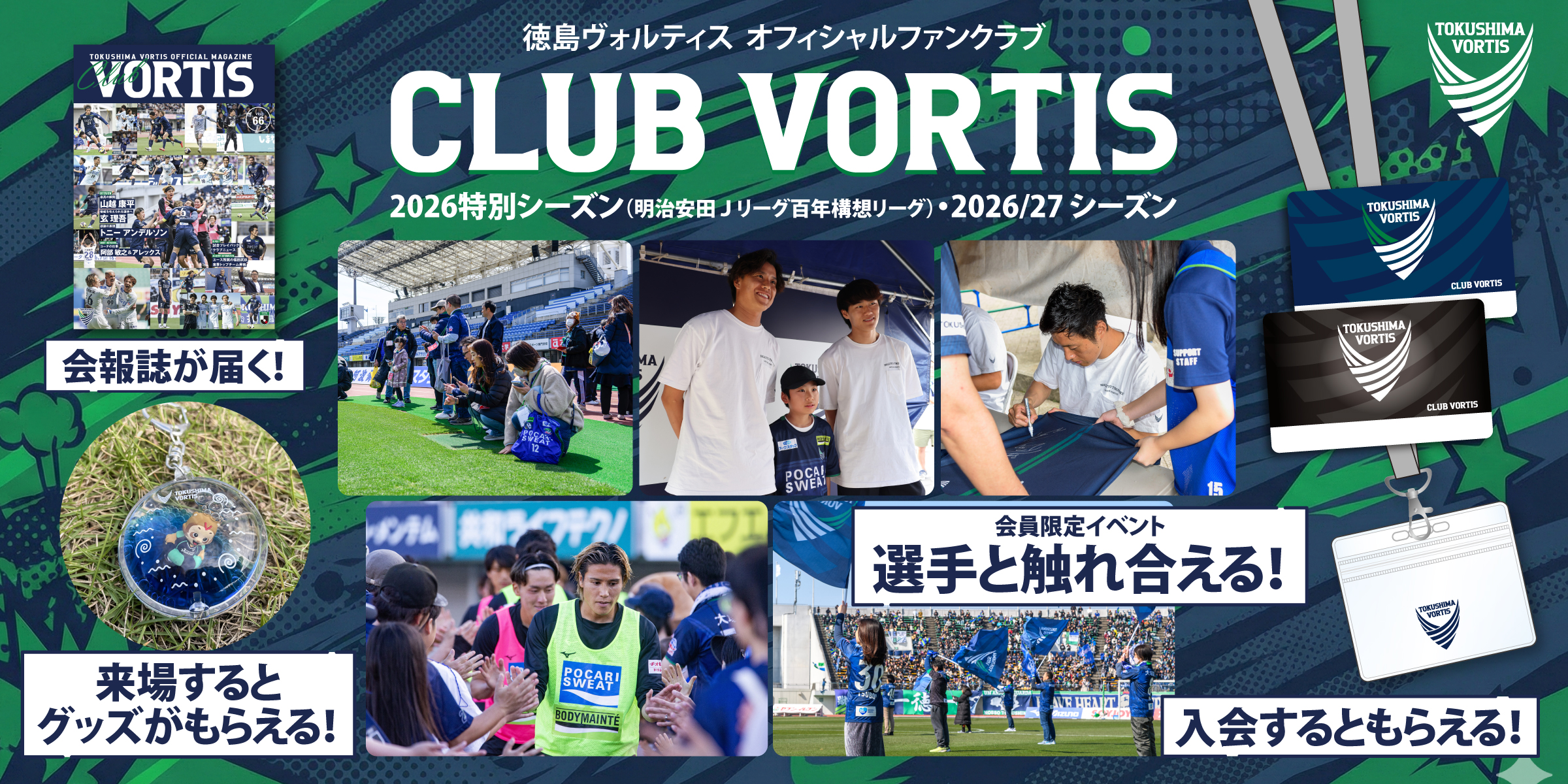 A. WEBからはもちろん、徳島ヴォルティス事務所やホームゲーム会場に設置された「CLUB VORTIS」会員受付ブースからもお申込みいただけます。